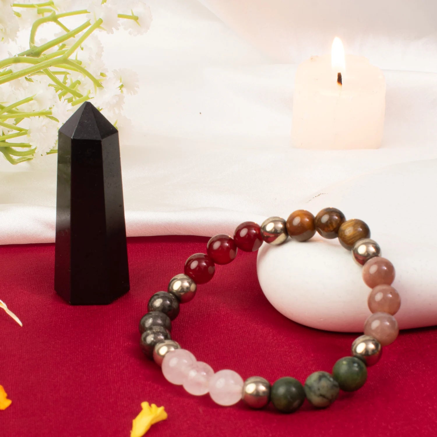Keep both the Dhan Vriddhi Bracelet and Black Tourmaline Tower in clean water mixed with rock salt for a few minutes. Lastly, pat dry with a clean cloth.
